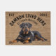 Rottweiler Gepersonaliseerd Hondenliefhebber welkom deurmat. Deze welkomstmat kan worden gepersonaliseerd met de naam van uw hond, de slogan kan ook worden gewijzigd of u kunt een afbeelding van uw eigen hond gebruiken (zorg ervoor dat het doorzichtig is). De tekst luidt: Samson woont hier... Alle traktaties welkom (kan worden aangepast) Bewerk het ontwerp om lettertype, kleuren en achtergrondkleur te wijzigen. Gebruik bij het vervangen van het afbeelding van uw hond een doorzichtig afbeelding. Maakt een geweldig cadeau voor een housewarming party, feestdagen, hondenliefhebbers en de meeste gelegenheden.