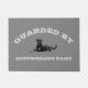 Rottweiler-hondendoormat perfect voor Rottie-eigenaars - Leest 'Beheerd door' bovenaan in bleke grijze, retro-atletische stijl, vetgedrukt lettertype. De onderkant heeft de naam van de hond gepersonaliseerd. Foto van een waakzame Rottweiler in het midden. Grijze achtergrond. Zowel achtergrondkleur als tekststijl, kleur, of grootte kunnen worden veranderd. Het zou een perfect huisverwarmingsgeschenk zijn voor de Rottweiler-eigenaar of een schattig geschenk voor de nieuwe eigenaar van een Rottie-puppy. Wij hebben het coördineren van het huisdecor van Rottweiler en andere giften van het hondenliefhebber van Rottweiler in onze winkel Zazzle.com/angela65.