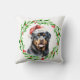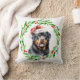 Kerstkussen met een waterverf Rottweiler en waterverf kerstkransontwerp. Voeg de naam van de hond toe aan het ontwerp en het is het perfecte cadeau-idee voor die laboratoriumliefhebber die je kent, of voor jezelf!