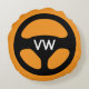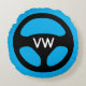 Round car steering wheel custom monogrammed Round Pillow . Cool novelty automotive design with personalized monogram name initial letters. Funny gift idea for mechanic or kids room / boys bedroom. Custom monogrammed pillow cushion for sofa, couch or bed. Automotive design home decor. Blue and orange or custom colors.