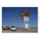 Route 66 en een vastgoedkoopje met deze stad zijn te koop - een motel en retro neon-bord langs een stuk historische Amerikaanse snelweg door Californische woestijn.