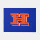 This royal blue and orange doormat features a bold varsity letter design inspired by classic school pride style.