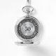 Gelukkige 25e huwelijksverjaardag aanpasbare klok met een koninklijk sierzilveren lijst op een zwarte achtergrond. Herdenk je zilveren bruiloft door dit zakhorloge te schenken.