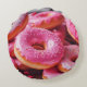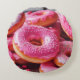 Roze aardbeiendonuts rond kussen