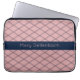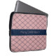 Roze Art Deco Patroon met Navy Naam Streep Laptop Sleeve