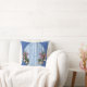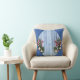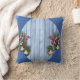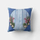 Roze Arty Flowers op Blue-wood-Fabric textuur Kussen