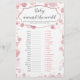 Deze baby shower game card is voorzien van een modern script op de zwarte roze en faux folie roos gouden stippen achtergrond, perfect voor een baby girl! De achterkant is met de antwoordsleutel.