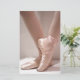 De onderpoten en voeten van een balletdanseres in roze puntenschuivers.