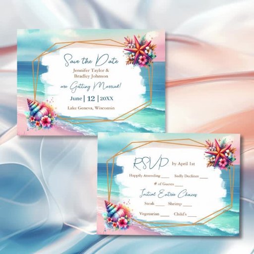 Pink Blue and Gold Coastal Seahorse Beachy WeddingOntworpen door Hilton Lisa