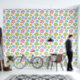 Het ontwerp toont een eigentijds, zomers geïnspireerd daisy motief in tinten van oranje-geel, limoengroen, roze en helderblauw op een strakke witte achtergrond. Het is een elegante en modieuze selectie die een betoverende, artistieke en abstracte botanische kwaliteit belichaamt, waardoor het ideaal is voor artistieke interieurontwerpers, decorliefhebbers, trendsetters en degenen die een mix van retro charme en romantische verfijning waarderen. Dit stijlvolle en vrouwelijke ontwerp is veelzijdig voor verschillende moderne decorstukken in huis, ideaal voor het verbeteren van ruimtes zoals een slaapkamer, logeerkamer, kinderkamer of kinderkamer met een unieke flair.