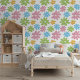 Roze Blauw Geel Lime Groen Bloemenkunst Patroon Behang