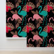 Roze Blauw Schattigee Flamingo Tropische Planten Behang