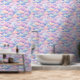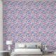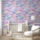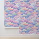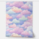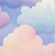 pluizig wolkenpatroon in pastelroze, blauw en sinaasappel.