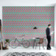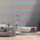 Roze Blauw Sinaasappel Zwart Zig-zag patroonschil Behang