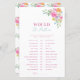 Geniet van je vrijgezellenfeest met dit "zou ze liever" spel, met heldere bloemenachtige en bewerkbare tekst. Voeg eenvoudig uw eigen gegevens toe door op de optie "personaliseren" te klikken.