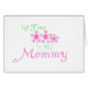 in pastelroze tekst en bloemen 1st Time Mammie kaarten, T-shirts, mokken, knoppen en andere nieuwe mama spullen, een geweldige manier om iedereen te laten weten dat je moeder wordt!