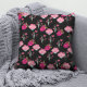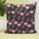 Roze bloemen rode rozen patroon boven zwarte vaste kussen
