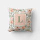 Roze Bloemen Roos Monogram Sierkussen - vrouwelijk, girly, modern interieur. Waterverf botanische bloemmotief.