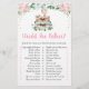 Deze adorable Would She Rather spelkaarten zijn een leuke activiteit voor een Bruidsfeest. Geef ze gewoon rond tijdens het feest waar de gasten lol zullen hebben om uit te zoeken welke activiteit de aanstaande bruid liever zou doen. Het ontwerp bevat koffers en een globe met roze waterverf bloemen en namaak goudkleurige confetti.