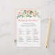 Deze elegante 'Wat Zit Er In Je Tas' kaarten zijn een geweldige manier om de pret te beginnen op je Bruidsfeest en het is gegarandeerd een grote hit! Geef ze gewoon rond tijdens het Bruidsfeest waar de gasten lol zullen hebben door hun tassen te gaan en de items op de lijst af te vinken die ze hebben. Degene met de meeste punten wint! Dit ontwerp bevat prachtige roze en crème waterverf bloemen.