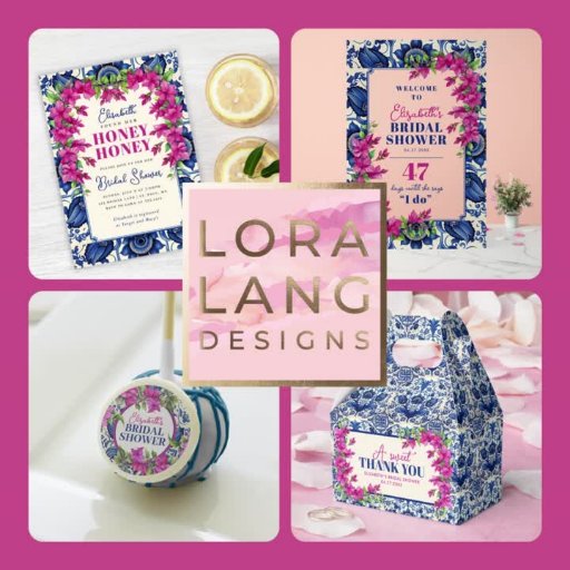 Pink Bougainvillea Blue Tile CollectionOntworpen door Lora Langowski