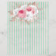Het en vrouwelijke ontwerp is voorzien van grote bouquet met roze rozen en andere bloemstukken en bladeren op de achtergrond van noodlijdende munt en bleke roze strepen. OPMERKING: Bouquet in verschillende posities voor en achter