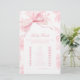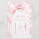 Voeg een vleugje elegantie toe aan je babymeisjesdouche met Coquette-thema met onze geavanceerde "Baby Traits" -game. Met een charmant boogontwerp en een prachtig bloemmotief op de rug, is deze heerlijke activiteit perfect om uw gasten te vermaken en blijvende herinneringen te creëren. Ideaal voor het toevoegen van plezier en opwinding aan uw speciale feest!