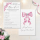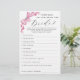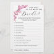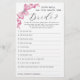 Dit vrijgezellenfeest spel kaart is Hoe goed ken je de bruid? Er zijn 10 vragen voor spelers om te beantwoorden. Het ontwerp is voorzien van een chique zijdeachtige roze strik met faux strass. Personaliseer de achterkant van de kaarten met de naam van de bruid. Overeenkomende producten beschikbaar.