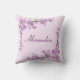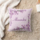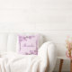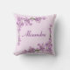 Een tak van roze kersenbloesems tegen een roze achtergrond siert de hoeken van dit aanpasbare kussen.
