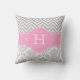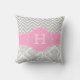 Roze Chevron en Damask Monogram Pillow Kussen