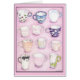 Een gekleurde voorstelling van een collectie handbeschilderde keramische mokken en bekeramische koppen, geplaatst tegen een roze achtergrond. Een mooi cadeau voor hen die van hun snoepjes thee of koffie houden.