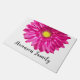 Deze welkomstmat heeft een grote, roze gerbera daisy en een bewerkbare familienaam. Voeg jouw naam of een bericht toe om gasten bij u thuis te verwelkomen. Bewerk de naam om deze te personaliseren met behulp van de bewerkingstool in de aanbieding.