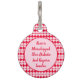 Volledig aanpasbaar argyle-hartpatroon in roze en rood, met ruimte voor gepersonaliseerde tekst die u niet vindt op standaard labels van huisdieren. Ziet er mooi uit voor jongens en meisjes. Vooraan personaliseer de naam van uw huisdier in het bericht. OF, u kunt de tekst uitgeven om op om het even welke informatie te wijzen u een vinder zou kunnen willen weten; zoals een medische aandoening, vereiste geneesmiddelen, steun de status van de hond, redding, timid, biter, enz. Op de rug - pas met uw volledige contactinformatie aan. U kunt de kleuren ook wijzigen, als u wilt...je kunt dit ID-label echt je eigen maken! Als je Boagie's unieke design koopt, dan geniet je niet alleen van mooie producten, maar ook van caged, dakloze en lijdende dieren, die gelukkig nieuw leven ingeblazen worden, omdat we 50% van onze winst doneren aan dierenhouders, redders en zieke of gewonde dieren in nood.