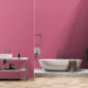 Dit elegante behang heeft een wit ruitvormig roosterpatroon op een roze achtergrond. Een perfect accent voor uw interieur.