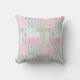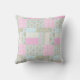 Een chic Pillow of Cushion, met een , nostalgisch faux patchwork-patroon van roze Dogroses op een hemelblauwe achtergrond met overeenkomstige poka-punten, strepen en vlakten. Een deel van het collectie "Rosy Posy", Posh & Painterly.