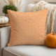 Een rustgevend, maar kleurrijk hedendaags patroon, met grillige magenta roze driehoeken tegen een oranje achtergrond.