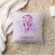 Een kussen met een magische en mystieke flair. Een Indiaans thema-ontwerp gemaakt met waterverven. Een roze waterverf dromenvanger met een webbed hoop en sierlijke veren opknoping naar beneden. Zet op de top van een paarse waterverf verfspatten met een lichte paarse achtergrond. Dreamcatcher geschreven op de voorkant en het kan gemakkelijk worden gepersonaliseerd of bewerkt met een naam of andere tekst naar wens.