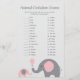 Laat de gasten elk dier vergelijken met hoeveel dagen hun zwangerschap duurt met ons roze en grijze olifantenspel, het dierentuin met de naam gestation game. De gebaren variëren van 12 dagen tot 645 dagen. ANTWOORDELIJKHEID: 1)F 2)J 3)E 4)O 5)M 6)L 7)K 8)D 9)I 10)B 11)A 12)G 13)C 14)H 15)N