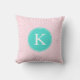 Roze en Aqua Grieks sleutelpatroon Monogram Kussen