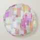 Roze en Blauwe Geometrische Abstractie Rond Kussen