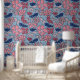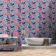 Roze en Blauwe Hand Getrokken Bloemen Block Print Behang