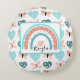 Roze en Blauwgroen regenbogen, buiken en hart Rond Kussen