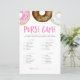 Controleer je portemonnee voor de objecten in de lijst. De persoon met de meeste punten is de winnaar! | Voeg deze leuke "Wat in je tas"-spelkaart toe aan je baby shower. Deze baby shower trivia-spelkaart is voorzien van roze, witte en chocolade waterverf donuts met kleurrijke sproinkles. Personaliseer door namen, gebeurtenis en datum toe te voegen. Dit donuts-paardenspel is perfect voor 'Het is een meisje-baby shower'.