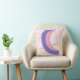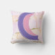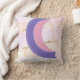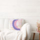 Een vierkant werpkussens, versierd met een abstract gemengd mediawerk dat waterverf in lila en roze combineert, een pen in diep roze en paars, en gouden verf. Het effect is ontspannen en zou een modern huis aanvullen. Het is een origineel werk, alleen beschikbaar in de kunst van Beth.