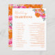 Veel plezier in je vrijgezellenfeest/vrijgezellenspel met deze coole game, met roze en oranje waterverf bloemige en bewerkbare tekst. Pas het indien nodig aan door te klikken op de "bewerken met ontwerpgereedschap".