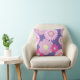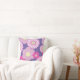 Geef je sofa een extra flair met deze roze en paarse bloemkussen. Het bloempatroon wordt getekend door de hand en bewerkt in Illustrator voor een unieke look.