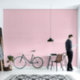 Roze en wit geruit behang