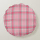 Roze en Wit geruite Naam Monogram | Rond Kussen