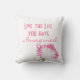 Pink and White Life Quote motivatie werpkussen. in roze - dit decoratieve werpkussen is voorzien van het motivatie citaat, 'leef het leven dat je je hebt voorgesteld' en is geaccentueerd met roze bloem.