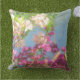 Een schilderij van roze en witte azalea's, die grenst aan een vijver.